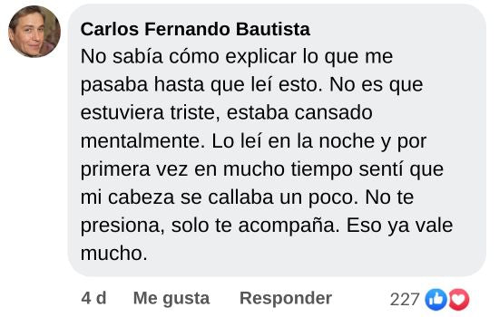 Está escrito para leerse cuando ya no puedes más y necesitas que tu mente descanse, aunque sea un poco.